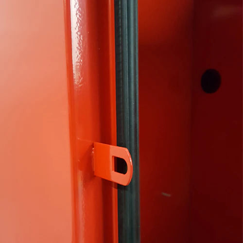 To ensure a long service life the complete unit is manufactured from 2.0 mm thick stainless steel with a powder coated finish. Double opening doors with three-point locking with two tri-key camlocks and one central hasp and staple with padlock shroud per door provides secure weatherproof storage for equipment on the roadside or site use.