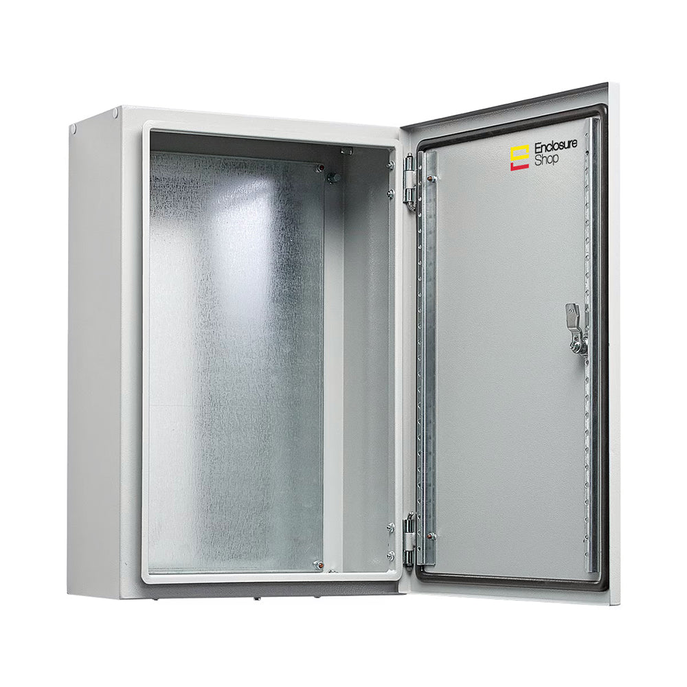 Our SWM19 IP66 Rated Galvanised Steel Electrical Enclosure for sensitive electrical equipment. Each Galvanised Steel Electrical Enclosure is powder-coated with UL approved epoxy polyester with a textured finish in Colour Grey RAL7035. This single door electrical cabinet is for wall mounting (wall mounting kit available as optional extra).